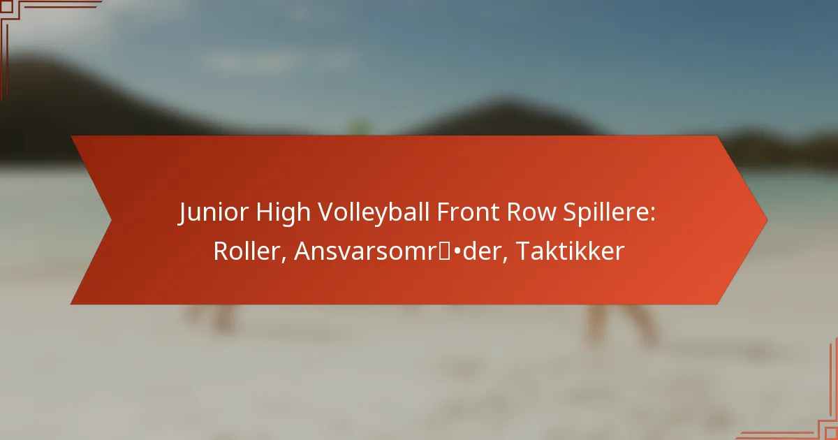 Front row spillere i junior high volleyball er essentielle for et holds succes, da de deltager i både offensive og defensive spil ved nettet. Deres roller inkluderer outside hitters, middle blockers og right-side hitters, som hver kræver specifikke færdigheder og effektiv kommunikation for at maksimere præstationen. Ved at mestre taktikker som positionering, timing og blokeringsteknikker kan disse spillere betydeligt påvirke udfaldet af kampene.